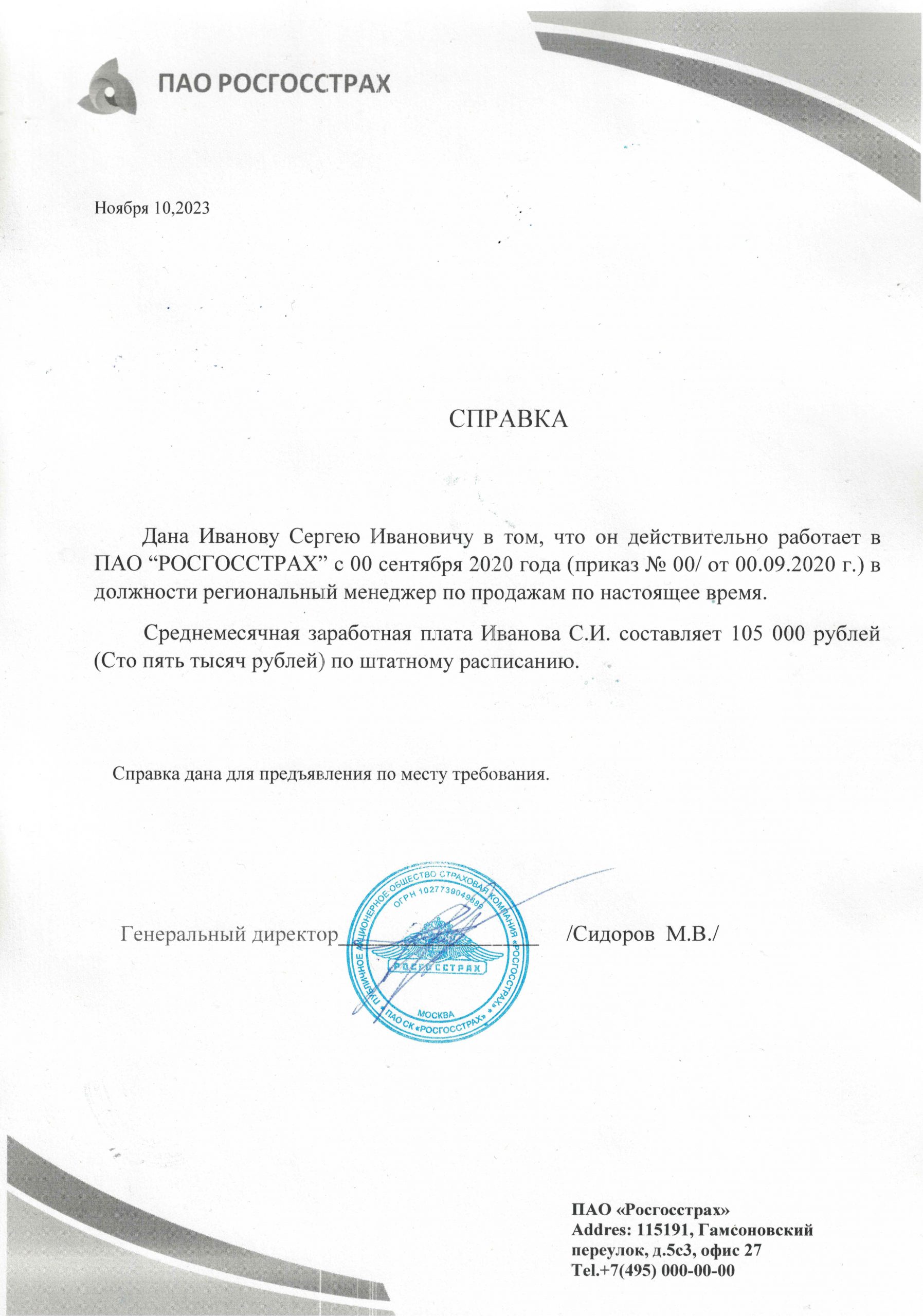 Справка с места работы